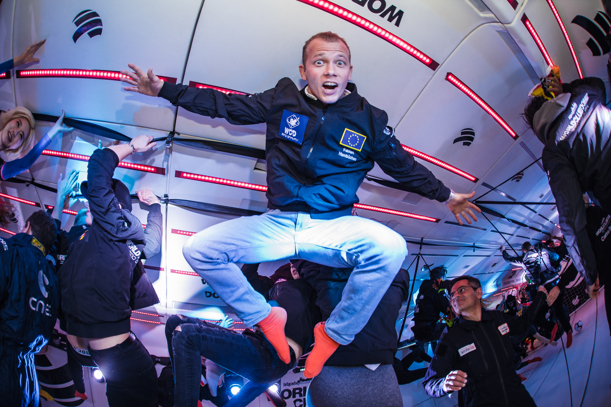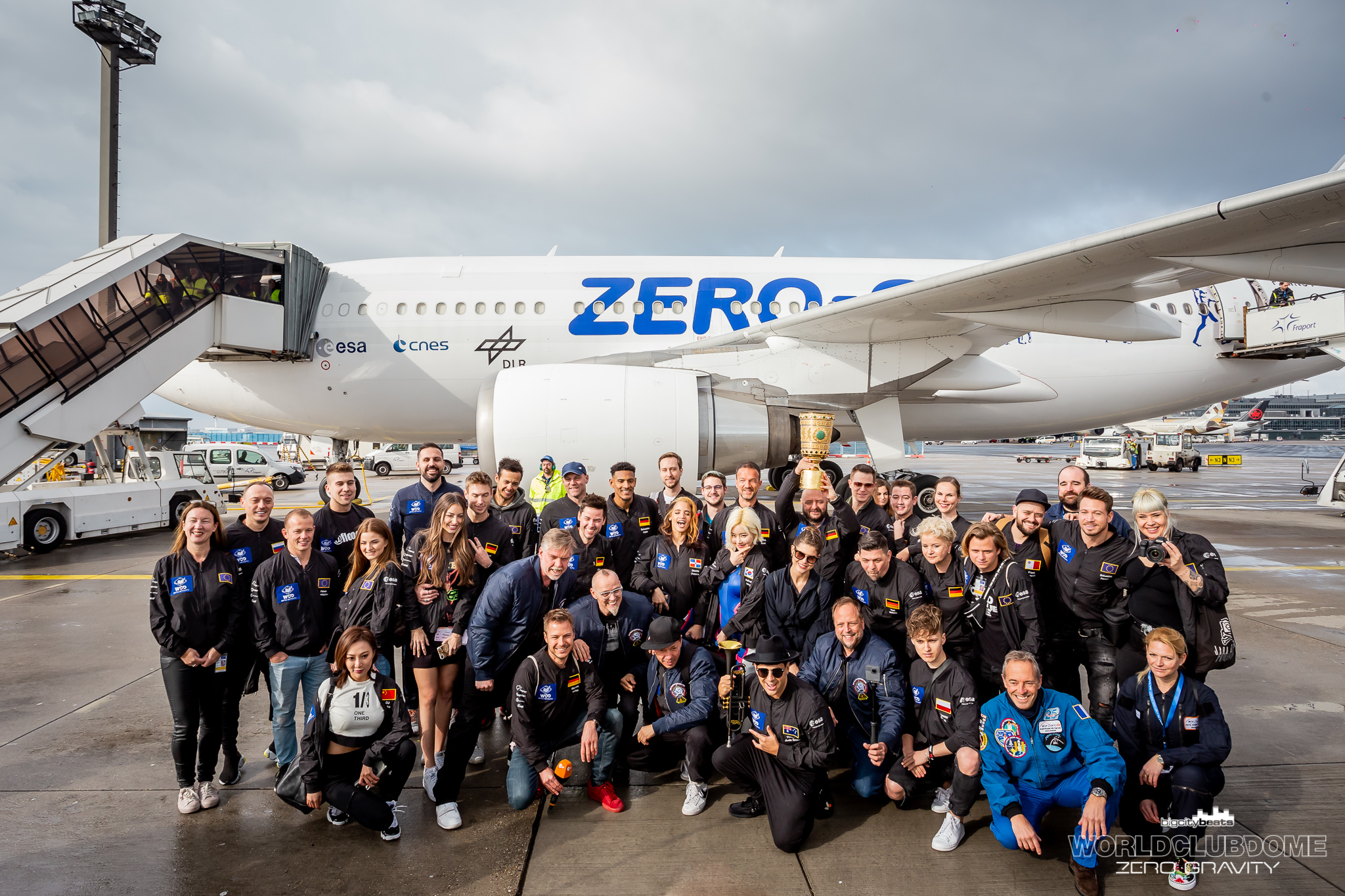 Eine großartige Erfahrung erlebte auch BigCityBeats-Resident-DJ Le Shuuk. Der Stuttgarter hatte beim Soundcheck am Tag zuvor noch gehörigen Respekt vor diesem Experiment, war aber zutiefst erleichtert, dass dieser Trip in die Schwerelosigkeit für ihn „das Beste war“, das er jemals erlebt hatte. Chris Stritzel alias Le Shukk hatte da oben alle Hände voll zu tun. Nicht nur, dass er hinter dem DJ-Pult stand und als erster DJ der Welt die erste Single in der Schwerelosigkeit veröffentlichte („Gold Baby“) – nein. Der 31-Jährige betätigte im Schwebemodus auch noch einen roten Buzzer mit seinem Fuß und starete somit in Spiderman-Haltung die erste Playlist in der Schwerelosigkeit, die direkt auf dem Streaminportal Napster aktiviert wurde und seitdem abrufbar ist. Le Shuuk spielte während der Parabelflüge zehn bis 16. Eins bis neun übernahm der australische Megastar an den DJ-Decks: Timmy Trumpet. „Insane. Unreal. No words. Just insane. I couldn’t believe it. There are no words to describe this feeling. Thank you WORLD CLUB DOME, thank you BigCityBeats, thank you ESA. Thank you Bernd Breiter. He is a believer, he is an achiever.” Seine Dankbarkeit drückte Timmy bereits vor diesem Statement und vor der Pressekonferenz aus. Denn er hatte seine Trompete an Bord, die natürlich auch zum Einsatz kam. Von musikalischen Grenzgängen zu sportlichen Höchstleistungen: Olympiasieger und Kunstturner Fabian Hambüchen absolvierte gleich mehrere Salti. „Ich hab mich im Schwebezustand einfach wie eine Kugel zusammengerollt und ließ mich von Jean-Francois Clervoy anstubsen. Und schon drehte ich mich.“, verriet er auf der Pressekonferenz, die gegen 16 Uhr im eigens eingerichteten BigCityBeats „Mission Control Centre“ im Terminal 2 des Flughafen Frankfurt startete und rund 90 Minuten später mit emotionalen Worten von Bernd Breiter und seiner Frau Carina endete. Und zwar in tiefer Verbundenheit mit den Partnern dieses fulminanten Ereignisses, unter anderem der Stadt Frankfurt, vertreten durch Stadtrat Markus Frank. „Dieses Event ist gigantisch”, so Frank. „Herzlichen Glückwunsch an Carina und Bernd. Ihr lebt einfach euren Traum und das schöne ist. Ihr nehmt uns mit bei euren Träumen, diese in der Realität zu bringen. Und das finde ich großartig und ich bin mächtig stolz, dass eine Frankfurter Familie, aus Frankfurt heraus so durchgeknallte Sachen auf den Weg bringt und damit auch unsere Stadt vermarktet. Das macht uns alle sehr, sehr stolz. Liebe Carina, lieber Bernd, vielen Dank dass es euch gibt. Und ganz ehrlich. Vor vielen Jahren waren die Beiden bei mir und hatten die Idee des WORLD CLUB DOMEs – also in der Arena eine große Party zu feiern. Ihr seid einfach die Größten!“