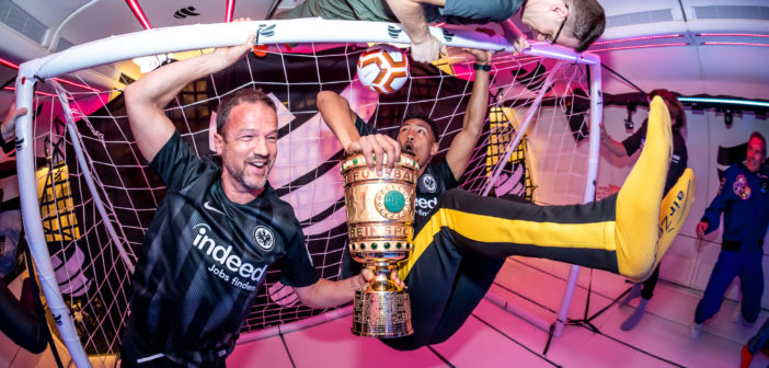 „Preparing for landing“, hieß es um 14:30 Uhr. Um wirklich kein Puzzleteil der spektakulären ersten Eindrücke zu verpassen, sobald die VIPs den Flieger verlassen, wurde ein Livestream via Facebook und YouTube eingerichtet, den Zehntausende User verfolgten. Moderatorin Jenny Knäble war hautnah dabei, als Bernd Breiter die Gäste zurück auf Planet Erde begrüßte. „Sensationell. Ich liebe die Schwerelosigkeit. Das war so geil. Ich habe mich selten so fit gefühlt“, waren die ersten Worte von Tim Mälzer an die pfiffige und spontan agierende Jenny Knäble. Pure Begeisterung beim TV-Koch, der das erste Salat-Dressing in der Schwerelosigkeit mixte und dies in der Hand hielt. Und Sébastien Haller, der Top-Scorer der Bundesliga 2018, der das erste Fußballtor in der Schwerelosigkeit direkt beim ersten Versuch schoss, musste regelrecht nach den richtigen Worten ringen vor Sprachlosigkeit: „Amazing. All the adventure today was crazy. I am very happy. Nice experience. Great experience. One of the best in my life.“ Die BILD Zeitung verbreitet ihre Euphorie gleich auf einer ganzen Seite der Deutschlandausgabe vom 26.03.2019: „Welt(raum)meisterlich! Fredi Bobic (47) und Sébastien Haller (24) feiern das erste Tor, das ohne Schwerkraft geschossen wurde, mit dem DFB-Pokal”.