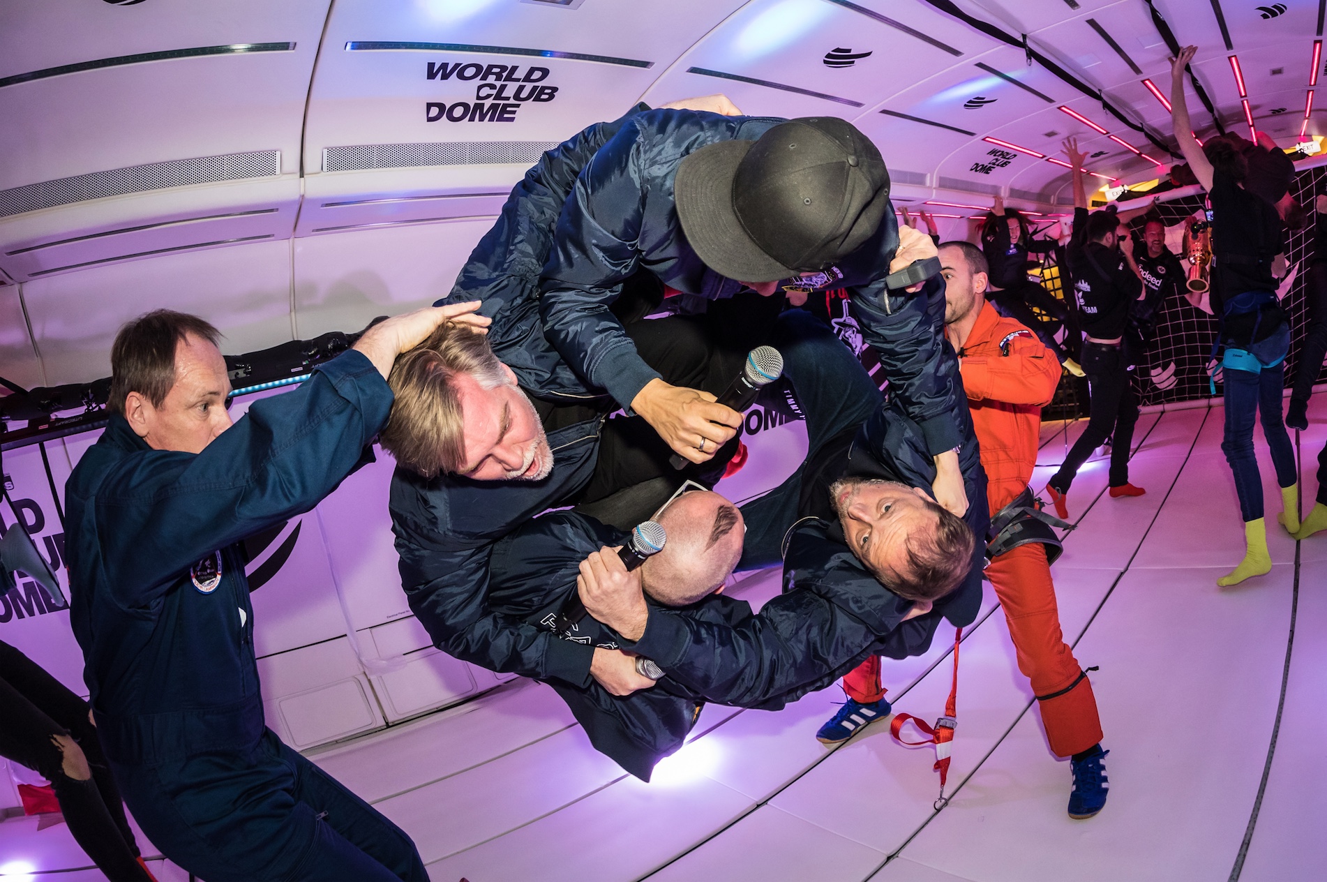 All das in 8.500 Metern Höhe. Wie sagte Tim Mälzer doch so schön selbst-ironisch und treffend, nachdem er gegen 14:30 Uhr wieder festen Boden unter den Füßen hatte: „Meine größte Angst war nicht, dass mir übel werden könnte – meine größte Angst war, dass ich gewichtsbedingt gar nicht erst die Schwerelosigkeit erlebe“. Warmherziges Gelächter in der Pressekonferenz. Es war ein gigantisches und unvergessliches Erlebnis für die VIPs, die an Bord des umgebauten Airbus A310 in die Schwerelosigkeit flogen. „Sowas erlebt man nur einmal in seinem Leben“, zog der Netflix-Serien-Star Dascha Polanco („Orange is the new Black“) seinen imaginären Hut. Und Deutschlands erfolgreichste Hip-Hop-Formation Die Fantastischen Vier rund und Smudo, Thomas D., Michi Beck und And.Ypsilon brachten es mit „Voll abgeflogen“ vorzüglich auf den Punkt. Nach der fulminanten und beeindruckenden Premiere im letzten Jahr nun also das – wie Tim Mälzer sagen würde – Topping. Stars aus den Bereichen Musik, Sport, Entertainment, Wissenschaft und Social Media vereinen – diese Vision von BigCityBeats-Gründer und CEO Bernd Breiter ging absolut auf. Noch nie hat man 50 VIPs und Astronauten in die Schwerelosigkeit geschickt.