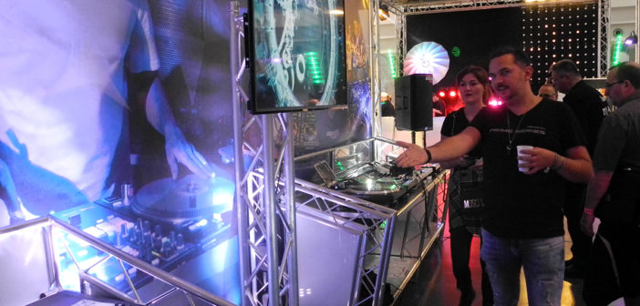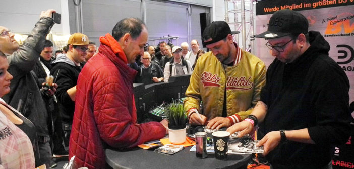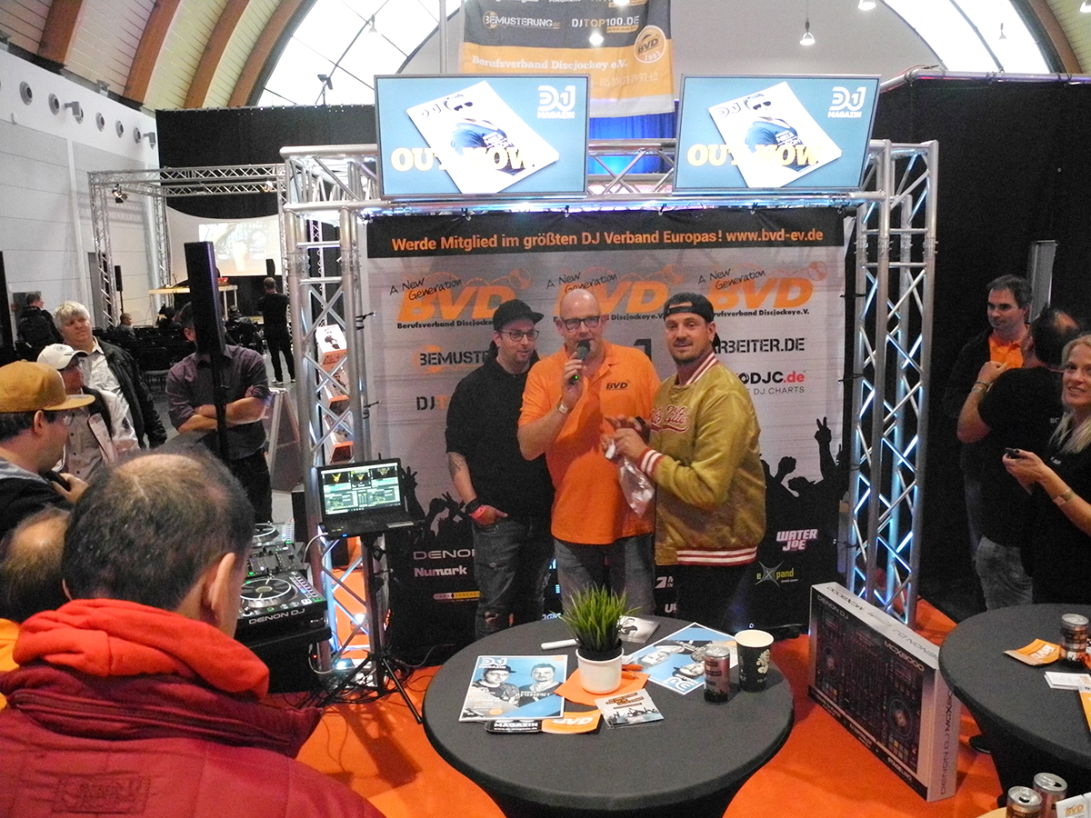 Fast ausnahmslos waren alle namenhafte Hersteller vor Ort und bildeten somit das Fundament für eine Fachmesse, die auch das zweite Mal dankend vom Fachpublikum angenommen wurde. Allein Pioneer DJ, Denon DJ, Numark, Rane DJ, Akai, Allen&Heath, Native Instruments, Serato, Chauvet DJ, IMG Stageline, ApeLabs sorgten für eine imposante Ausstellerliste. Aber auch viele kleinere Aussteller, die man auf großen Messe-Events vielleicht nicht erwarten kann, präsentierten zum Teil sehr interessante, innovative Produkte und Lösungen, so dass mit Sicherheit jeder Besucher etwas für sich „mitnehmen“ konnte. Dies sollte nicht nur auf die Ausstellerflächen sondern auch auf die sogenannten „Checkpoints“ zutreffen, die im Vergleich zum Vorjahr auf insgesamt sieben erweitert wurden. Und in der Tat war das Feedback insgesamt sehr positiv, auch wenn einige der dort stattfindenden Workshops bzw. Vorträge bereits vom Vorjahresevent oder ähnlichen Veranstaltungen bekannt waren. Da einige der Vorträge oben auf der Galerie positioniert waren, konnte man den subjektiven den Eindruck erhalten, dass die Besucherzahlen doch etwas gering ausfielen – dass dem nicht so war, durfte man jedoch am Stand des Berufsverband Discjockey erleben, als dort in Zusammenarbeit mit Denon DJ eines der Highlights des ersten Messetages stattfand: die Verlosung eines MCX8000 Controllers überreicht, von keinem geringeren als dem erfolgreichsten deutschen DJ-Duo STEREOACT, die ihren zahlreichen Fans im Anschluss noch etliche Autogrammwünsche erfüllten.