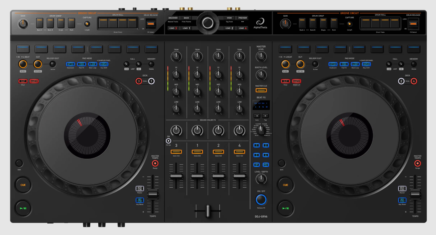 AlphaTheta Corporation kündigt das Release des DDJ-GRV6 an, ein 4-Kanal-DJ-Controller, der sowohl mit rekordbox als auch mit Serato DJ Pro kompatibel ist.
