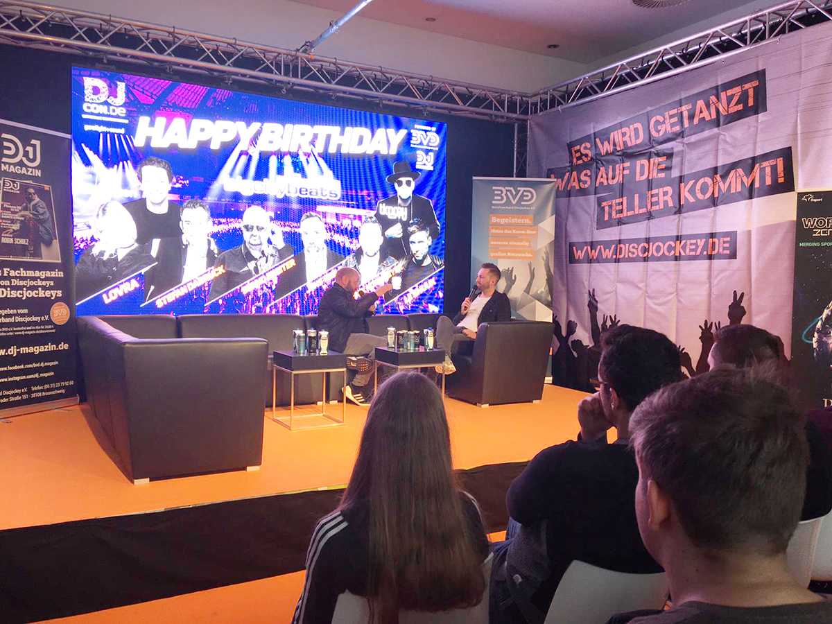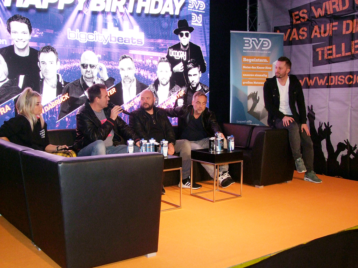 Eine weitere Herausforderung war das Bühnenprogramm, insbesondere die »Pre-Sessions« zu der am Abend in der Frankfurter Festhalle stattfindenden Birthday-Party BigCityBeats Road To WORLD CLUB DOME – The Birthday – 15 YEARS. Mit dem Anspruch, dem Publikum ein Vorprogramm der Extraklasse zu bieten, setzte das Team des DJ-Magazins im Vorfeld alle Hebel in Bewegung, um alle -wirklich alle- Stars des WORLD CLUB DOME auf die Bühne des Berufsverband Discjockey e.V. zu bekommen. Höhepunkt sollte ein Roundtable mit einigen der bedeutendsten Personen in der deutschen Musikindustrie werden, namentlich Bernd Breiter (BigCityBeats), Stefan Dabruck (Manager u.a. von Robin Schulz) mit LOVRA, Jens Thele (Kontor Records), sowie Dominik Koislmeyer als Moderator. Als Sahnehäubchen wurde Timmy Trumpet, zur Zeit wohl einer der angesagtesten DJs weltweit, angekündigt.