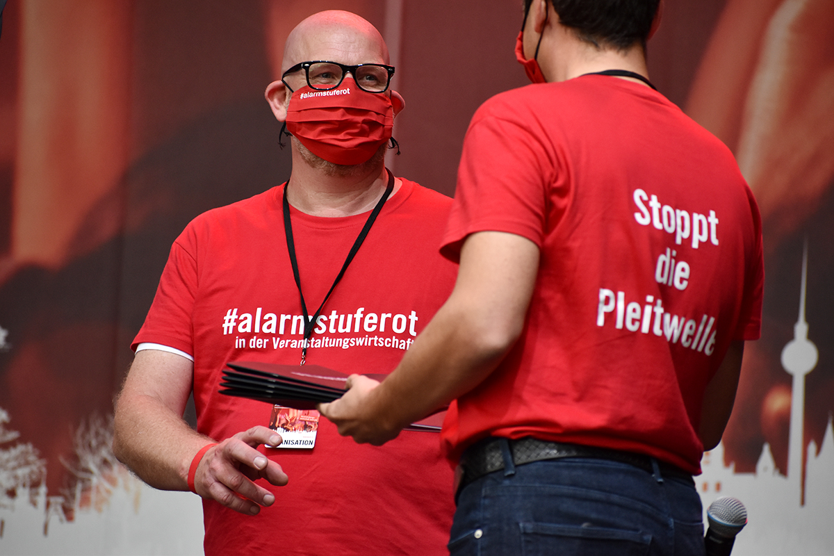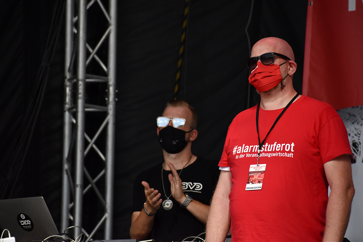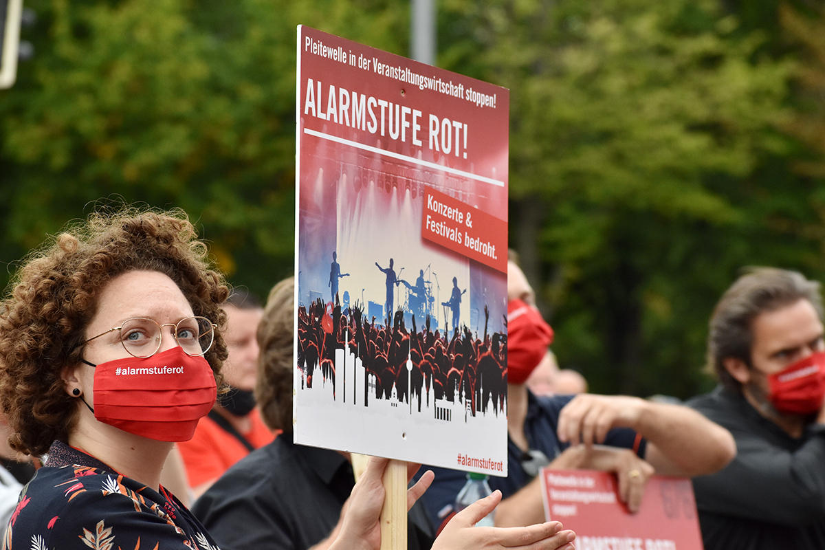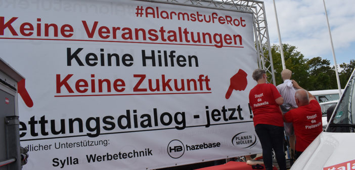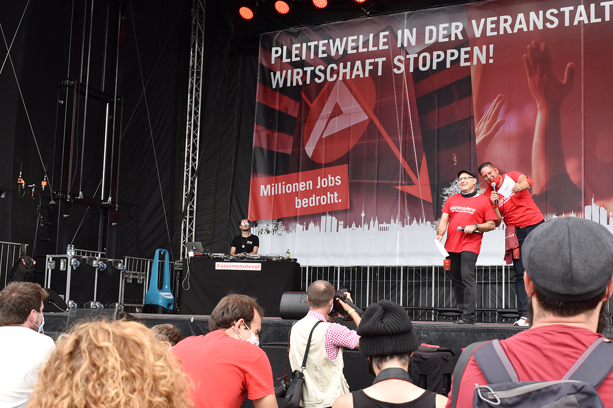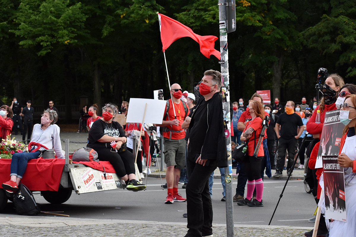 Die Initiative #AlarmstufeRot rief am 09.09.2020 zu einer Großdemo in Berlin auf und über 15.000 Mitarbeiter und Vertreter des Veranstaltungswesen folgten diesem Aufruf. Nicht gegen Corona-Maßnahmen und Hygieneregeln sondern mit Mund-/Nasenschutz und Abstand für echte, unbürokratische Hilfen demonstrierten zahlreiche Betroffene und deren Angehörige friedlich, diszipliniert aber mit handfesten Forderungen an die Bundesrepublik.