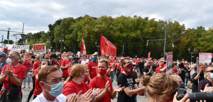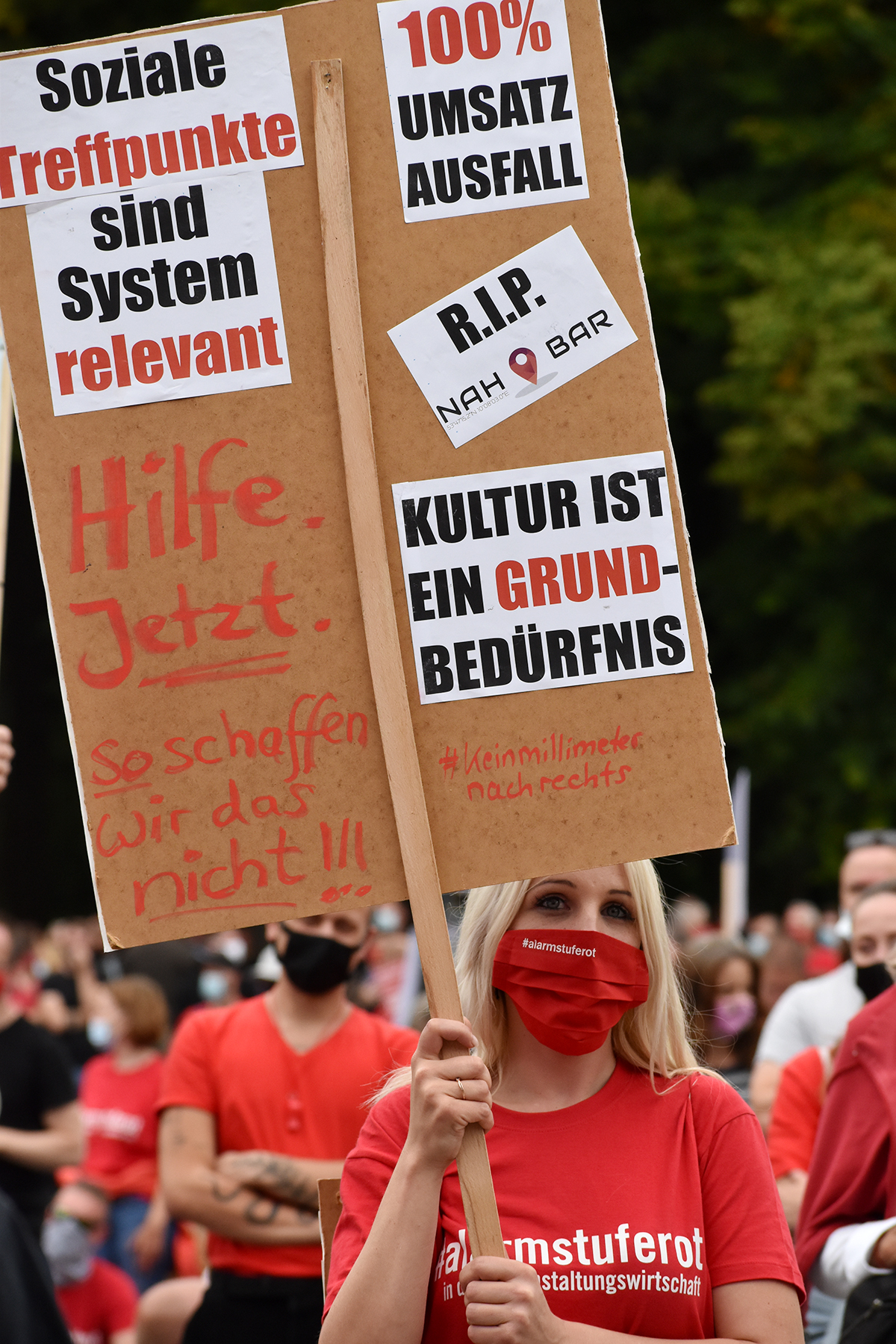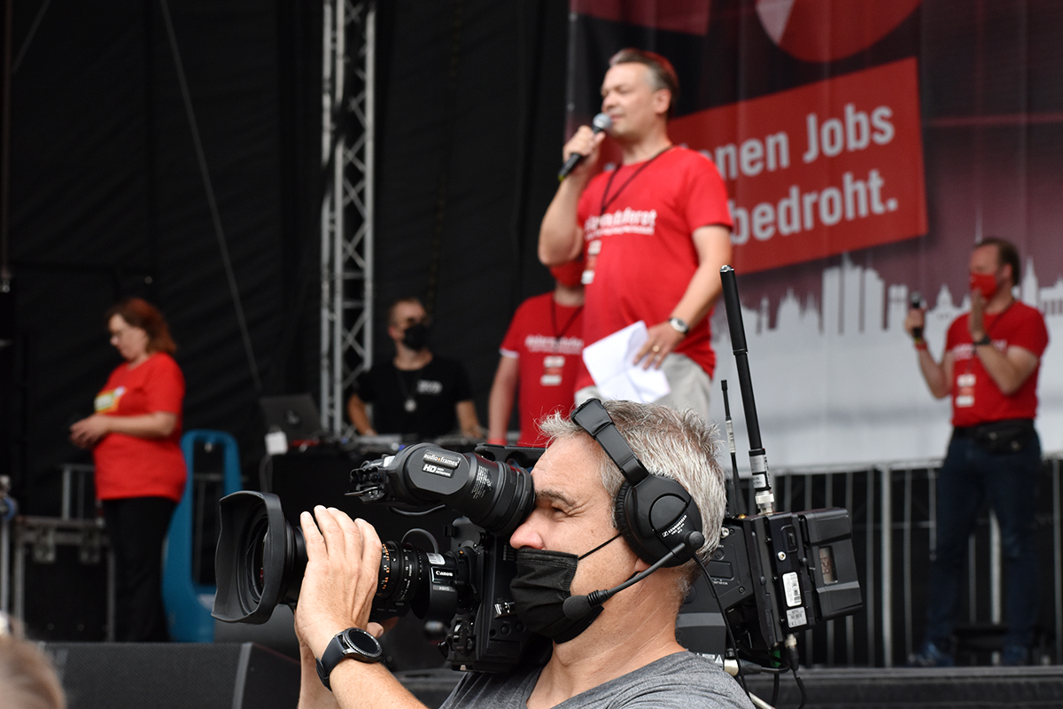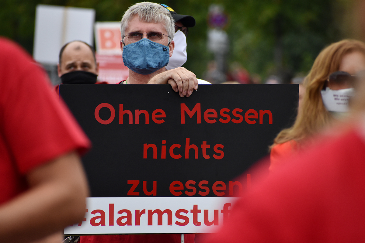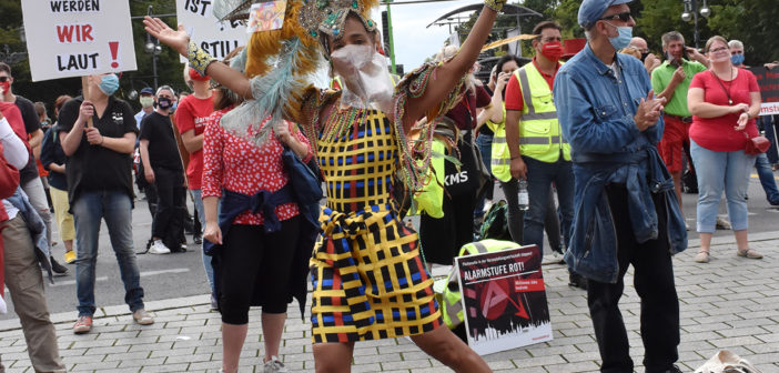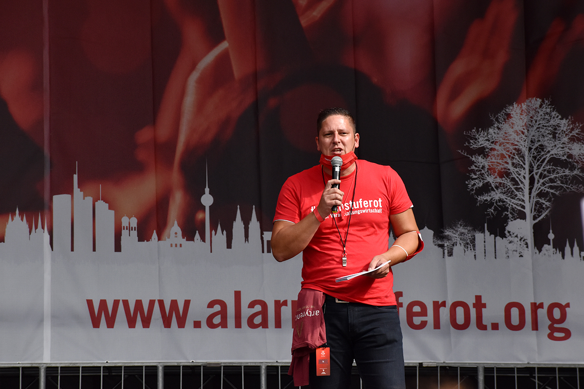 Die Initiative #AlarmstufeRot rief am 09.09.2020 zu einer Großdemo in Berlin auf und über 15.000 Mitarbeiter und Vertreter des Veranstaltungswesen folgten diesem Aufruf. Nicht gegen Corona-Maßnahmen und Hygieneregeln sondern mit Mund-/Nasenschutz und Abstand für echte, unbürokratische Hilfen demonstrierten zahlreiche Betroffene und deren Angehörige friedlich, diszipliniert aber mit handfesten Forderungen an die Bundesrepublik.