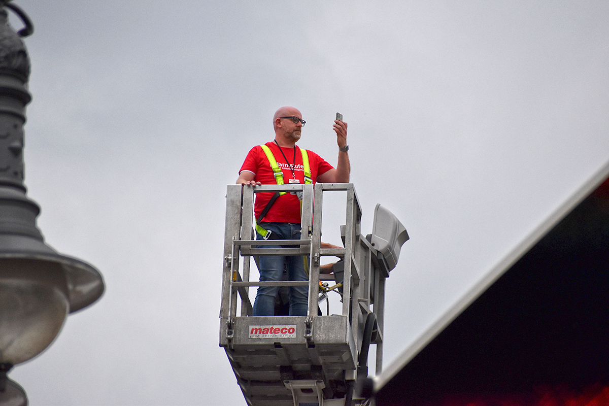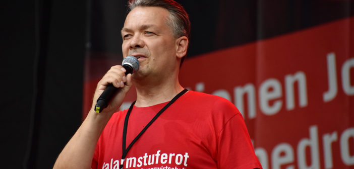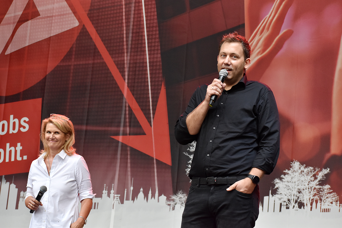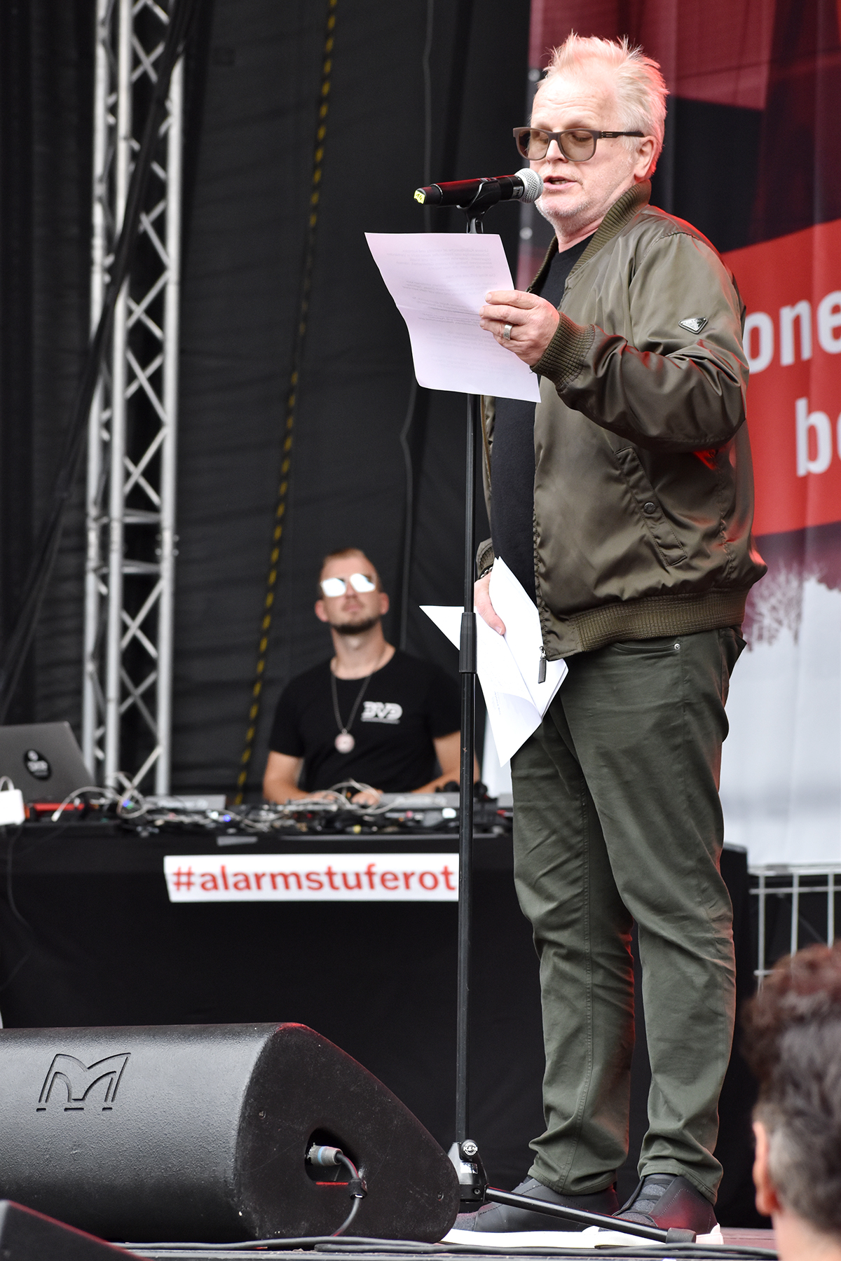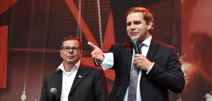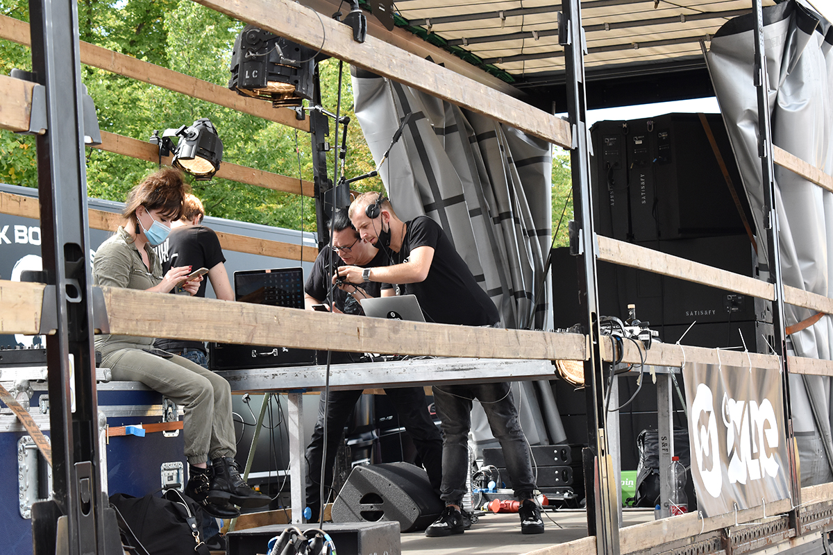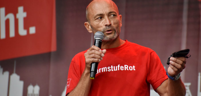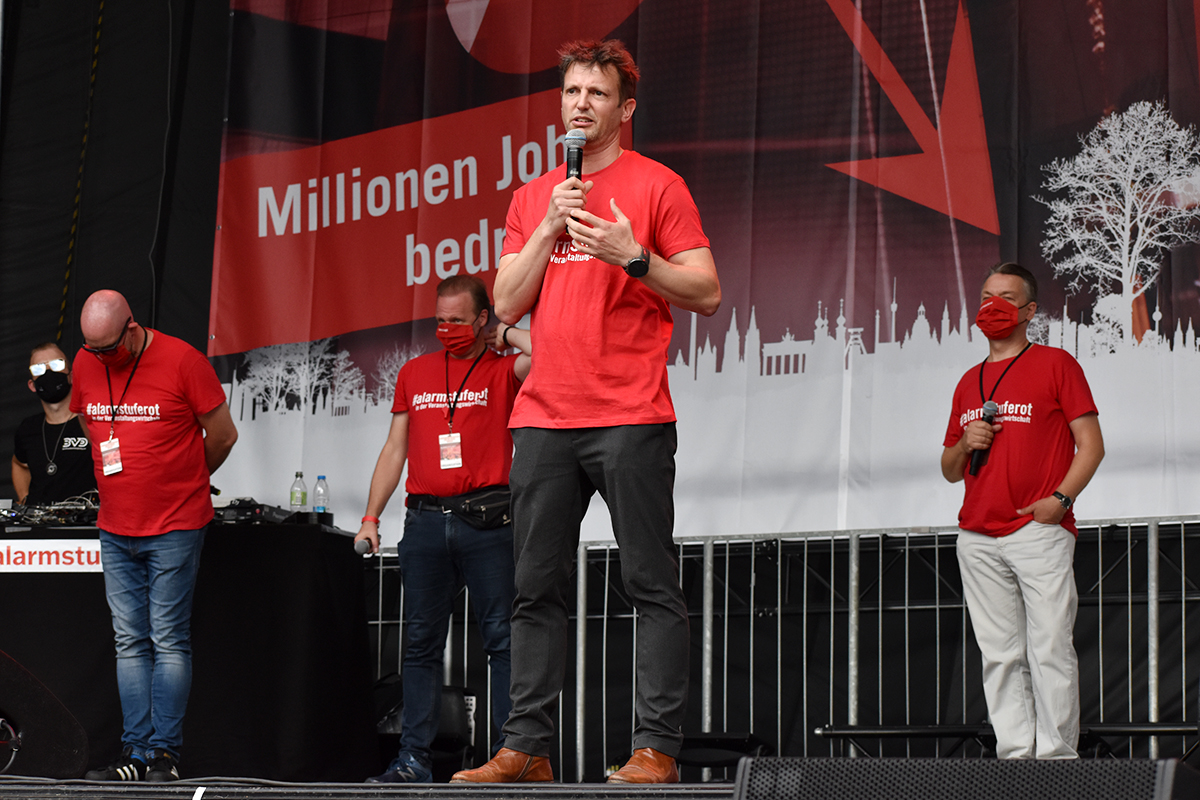 Das Programm auf der großen Bühne am Brandenburger Tor war ein weiteres Beispiel höchst professioneller Vorbereitung und Durchführung. Neben den Initiatoren selbst, die das Anliegen der Veranstaltungswirtschaft nochmals eindringlich darlegten und an die Bundesregierung appellierte kamen auch Künstler und Politiker fast aller politischen Parteien zu Wort. So zeigten Künstler wie Stereoact, Mia Julia, Herbert Grönemeyer, Kathrin Hoffmann und The Boss Hoss mit ihrer persönlichen Präsenz ihr Support und ihre Anteilnahme für die verzweifelte Situation der gesamten Branche. Durch das Programm führte der aus zahlreichen TV-Produktionen bekannte Moderator Aljoscha Höhn. Er moderierte u.a. diejenigen Politiker an, die sich nach dem Dialog am Reichstag –zu dem die Initiative #AlarmstufeRot extra einen großen Verhandlungstisch aufgestellt hatte– bereiterklären, auf der Bühne zu den Demonstranten zu sprechen. Dies waren u.a. Falko Mohrs (MdB, SPD), Carsten Müller (MdB, CDU/CSU), Klaus Ernst (MdB, Die Linke) Vorsitzender des Bundesauschusses für Wirtschaft und Energie, Kai Wegner (MdB, CDU), Lars Klingbeil (MdB, Generalsekretär SPD), Sabine Poschmann (MdB) stellv. wirtschaftspolitische Sprechering Bundestagsfraktion SPD), Katrin Göring-Eckardt (MdB, Fraktionsvorsitzende B’90/Die Grünen), Georg Kössler (MdB, Clubpolitischer Sprecher B’90/Die Grünen), Caren Lay (MdB, stellv. Fraktionsvorsitzende Die Linke), Reinhard Houben (MdB, wirtschaftspolitischer Sprecher FDP Bundestagsfraktion), Bernd Riexinger (MdB, Parteivorsitzender Die Linke), Diether Dehm (MdB, Die Linke).