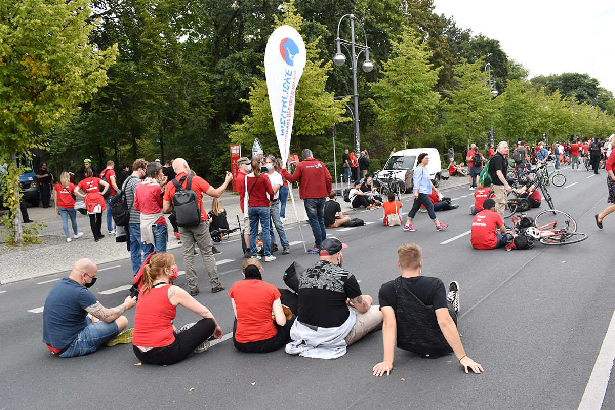 Wochenlange Vorbereitungen und unzählige Telefonkonferenzen gingen diesem Großevent voraus, bevor am frühen Morgen des 09.09.2020 eine riesige Bühne am Brandenburger Tor aufgebaut wurde, während sich ab ca. 10.00 Uhr die Truck- und Autokolonne am Olympischen Platz formierte und sich für den parallel stattfindenden Fußmarsch tausende Menschen am Alexanderplatz formierten. Zeitgleich, zur symbolischen Uhrzeit von 12:05 Uhr sollten sich beide Züge in Bewegung setzen und am Brandenburger Tor zusammentreffen. Die am Fußmarsch beteiligten Menschen legten zudem symbolisch ihr „letztes Hemd“ am Reichstag nieder.