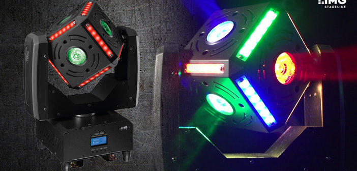 Die Beams der 6 wirklich hellen OSRAM-LEDs wirbeln endlos aber wohl kontrollierbar aus dem Kopf des MINICUBE-60 von IMG STAGELINE. Ergänzt um 12 seitliche RGB-LED-Streifen sorgt der kompakte Movinghead für eine lebendige Lichtshow.