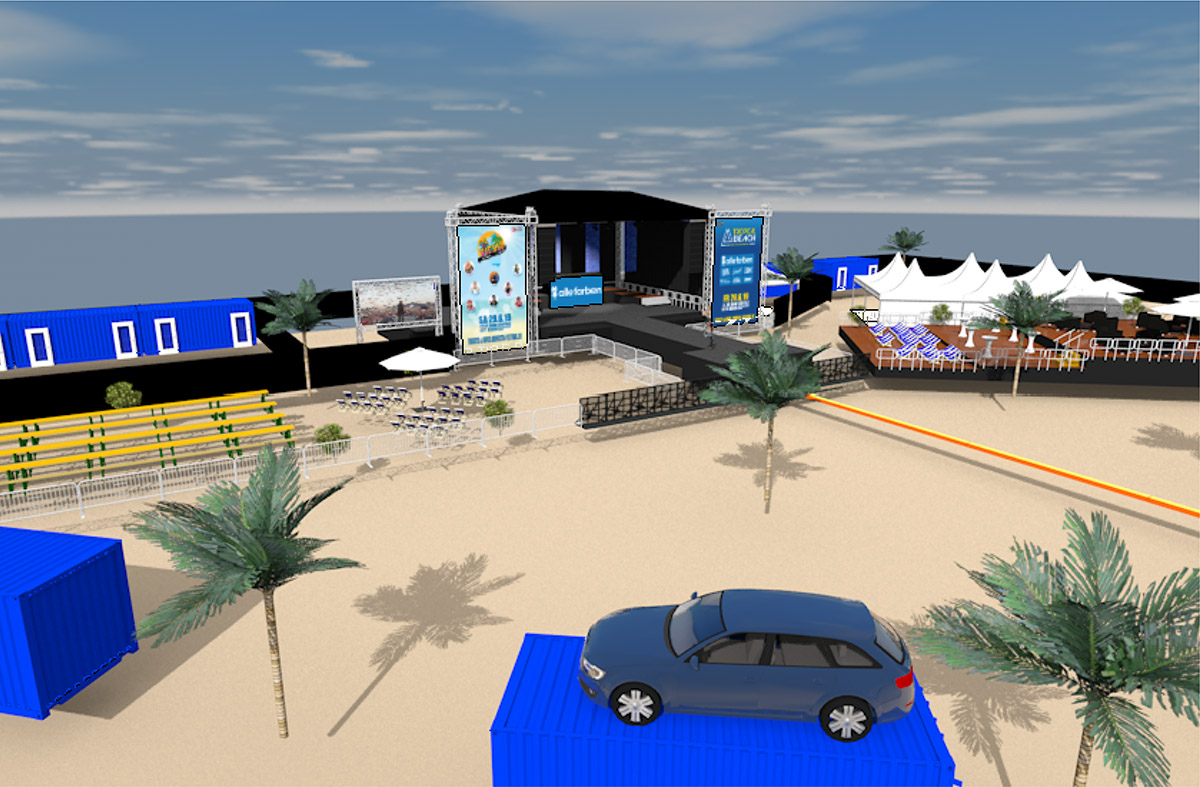 Von der Computersimulation bis zum lebendigen Event – Das 1. Tropical Beach Festival steht in den Startlöchern! Grafik: Eventschmiede