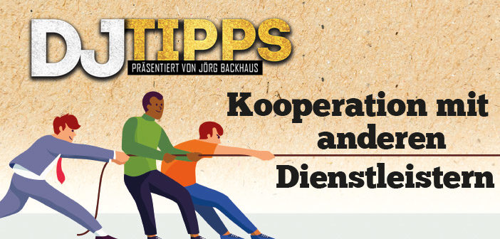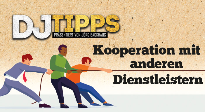 Bevor man überhaupt Kontakt zu anderen Dienstleistern aufnimmt, sollte man erst einmal überlegen, mit welchen Dienstleistern man zusammenarbeiten möchte und was man ihnen im Falle einer Kooperation anbieten kann. Für DJs bietet es sich an, mit Locations, Fotografen und Weddingplanern zusammenzuarbeiten. Das sind alles Dienstleister, die vor einem in der „Nahrungskette“ stehen oder zumindest auf gleicher Höhe. Die Locations sind zum Beispiel die erste Anlaufstelle für Kunden, da man zunächst einen Raum sucht und dann erst im Anschluss  einen DJ und Fotografen. Eine Zusammenarbeit mit den Locations und Fotografen macht am meisten Sinn, da man von ihnen die meisten Aufträge in Form von Weiterempfehlungen erhält. Genauso verhält es sich mit Weddingplanern, die von Anfang an in die Planung und Organisation einer Hochzeit eingebunden sind.
