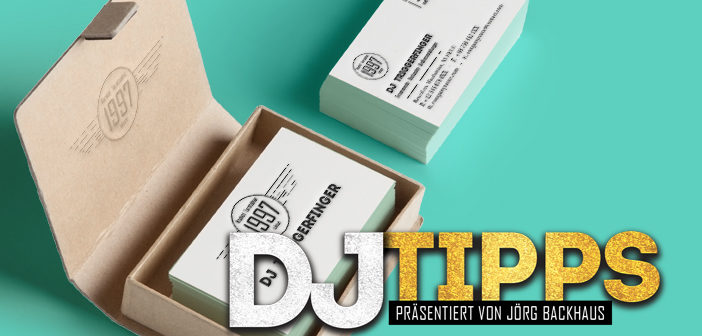 Die Visitenkarten sollte man immer am Mann oder an der Frau haben. Man weiß ja nie, wann man danach gefragt wird. Für rund 3 € bekommt man auf Amazon oder im Bürohandel Visitenkartenetuis. Diese schützen die Visitenkarten, damit sie nicht verknicken. Die Etuis kann man dann an verschiedenen Orten verstauen (Jackentasche, DJ-Bag, Handschuhfach etc.).