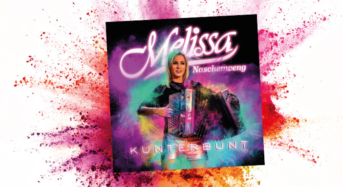 Kunterbunt heißt auch ihr neues Album, welches am 24. Februar bei Sony Music / Ariola erscheint. Mit einem Kracher geht es rein ins neue Album von Melissa; „Die Ganze Nacht“ – Uptempo. Tanzen. Von dem Song gibt es auch einen Dance-Mix als Bonus-Track. Die Harmonika ist mit dabei und Melissa singt im Dialekt. „Viel zu oft wird die Harmonika zu schnell vereinnahmt. Die Leut‘ sehen eine Harmonika und gleich heißt es: a-ja, Volksmusik! Dabei steckt ja noch viel mehr andere Musik drin, in der Steirischen!“