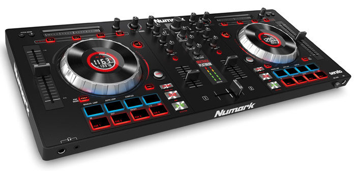 Numark präsentiert den wegweisenden DJ Controller Mixtrack Platinum. Aufgrund des simplen, hoch-funktionalen Designs für DJs aller Art – vom Bedroomer bis zum Profi DJ – sind die Controller der Mixtrack Familie die weltweit am meisten gekauften DJ Controller. Die Serie überzeugt durch einen hohen Funktionsumfang, einfachste Bedienung, professionelle Verarbeitungsqualität und einen erschwinglichen Preis. Mixtrack Platinum erweitert diese Attribute um ein gestochen scharfes LCD Display im Zentrum beider Jogwheels, 4-Kanal Steuerung und Gain-Kontrolle für jeden Kanal. Mit den Displays des Mixtrack Platinum können sich DJs verstärkt auf Ihren Mix konzentrieren, ohne auf den Computer schauen zu müssen. Die beiden Displays zeigen BPM, Jogwheel Position, Restlaufzeit, Key Lock und Pitch Einstellung an. Unabhängige Transportkontrollen, 24 Bit Audio Ausgänge, extra lange 100 mm Pitchfader, Serato DJ Intro, Multifunktions-Touchstrips und 16 hintergrundbeleuchtete Performance Pads machen den Mixtrack Platinum zu einem Stage-tauglichen Gerät.