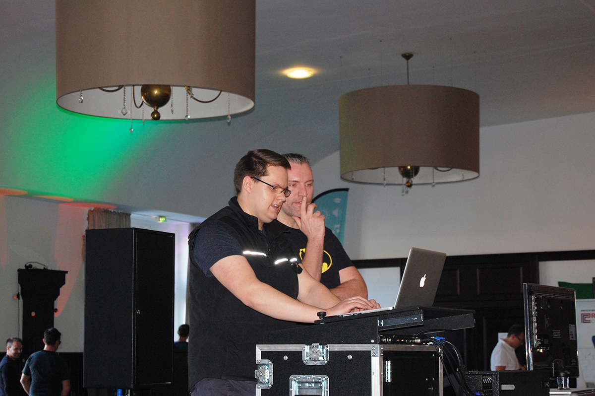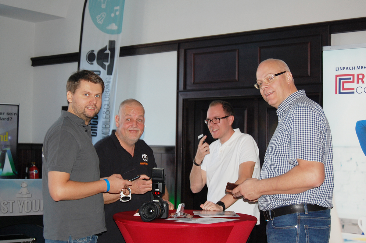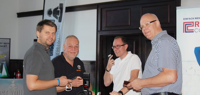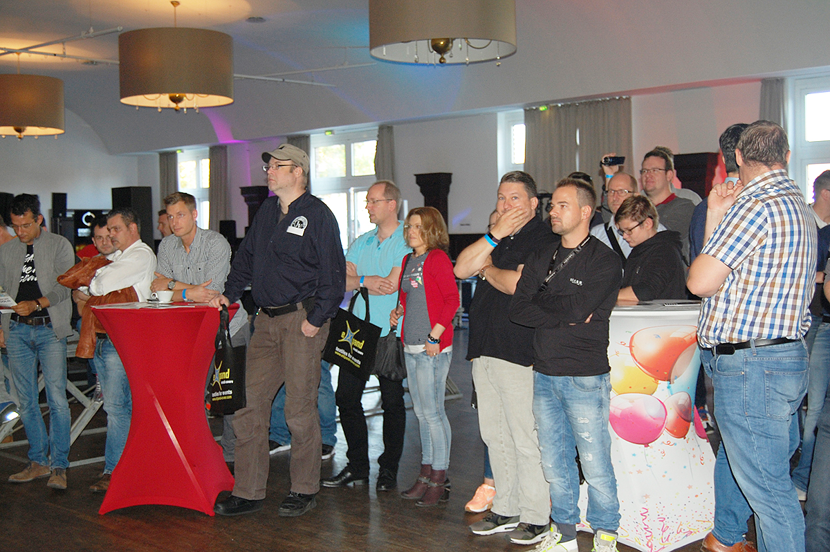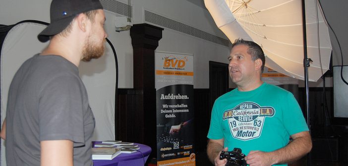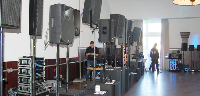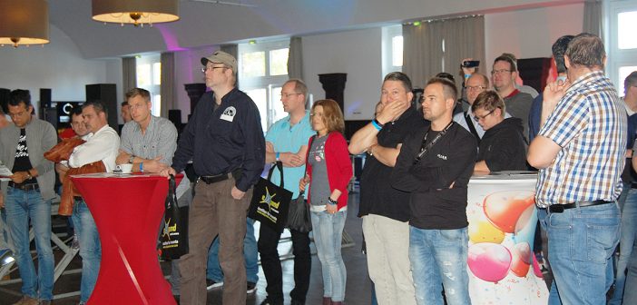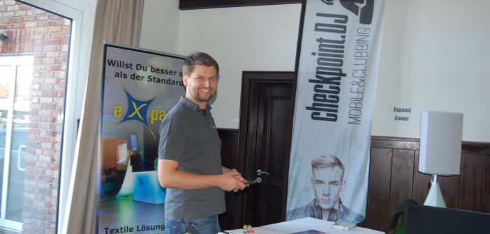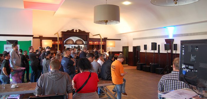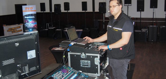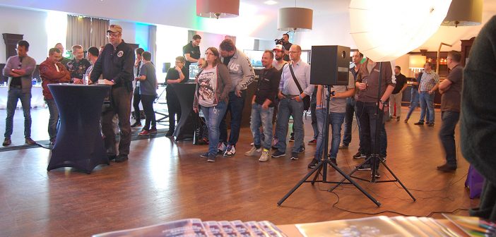 Viele Kollegen haben selbst mehrstündige Anfahrten in Kauf genommen. Ein Kollege ist nach dem Samstagsgig sogar von München nach Düsseldorf geflogen, um von dort aus per Taxi nach Bottrop-Kirchhellen zu fahren. Das nenne ich mal Engagement. Neben dem eigentlichen Test der PA-Anlagen hatten die Kollegen/innen auch die Möglichkeit, in den Pausen aktuelles DJ-Equipment auszuprobieren oder sich über Akkuboxen, Akku-Floorspots und DMX-Controller zu informieren. Viele Kollegen haben auch die Chance genutzt, um mit Daniel Pusch von „Wir lieben Webdesign“ (www.wir-lieben-webde-sign.de) ins Gespräch zu kommen. Daniel Pusch bietet einen speziellen DJ-Homepage-Baukasten an, der auf großes Interesse gestoßen ist. Am Stand des BVD e.V. standen unsere Kollegen Reiner Hoffmann, sowie BVD e.V. Präsident Dirk Wöhler in seiner Funktion als Präsident für Fragen rund um den BVD e.V. zur Verfügung. Gegen Ende der Veranstaltung hat Hans-Hermann Dittmer den Kollegen sein neues Konzept „Ready Complete“ (Foto-booth+Marketingkonzept) vorgestellt.
