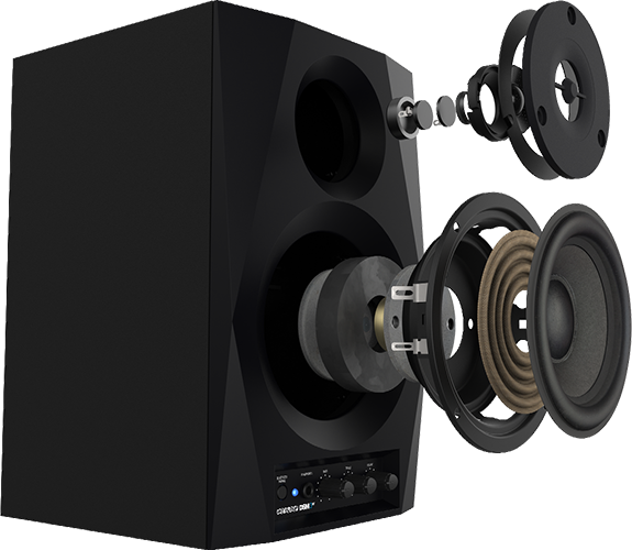 Das Bassreflex-Design ermöglicht einen druckvollen Bass und reduzierten Luftwiderstand. Die optimierten Hochtöner bieten darüber hinaus einen weiten Stereo-Sweet-Spot für Producer. Nicht zuletzt liefern die eingebauten Class-A/B-Verstärker einen klaren, verzerrungsarmen und satten Sound.