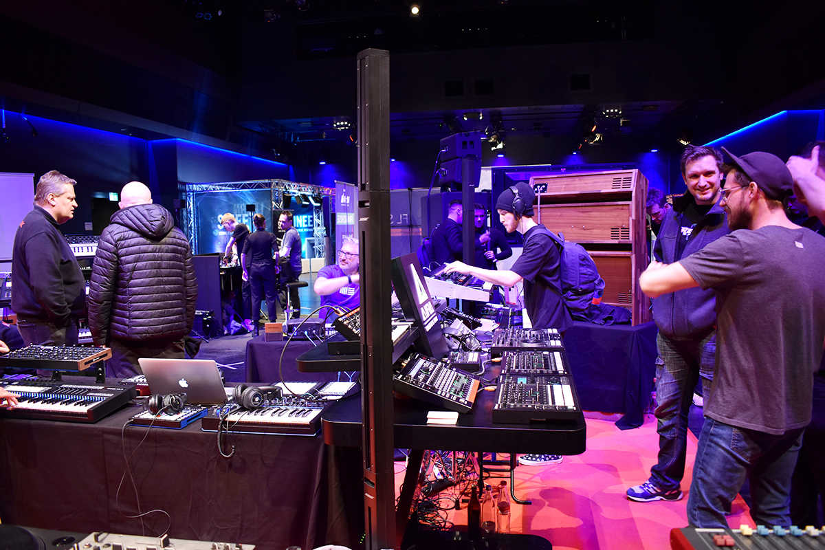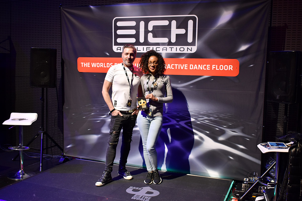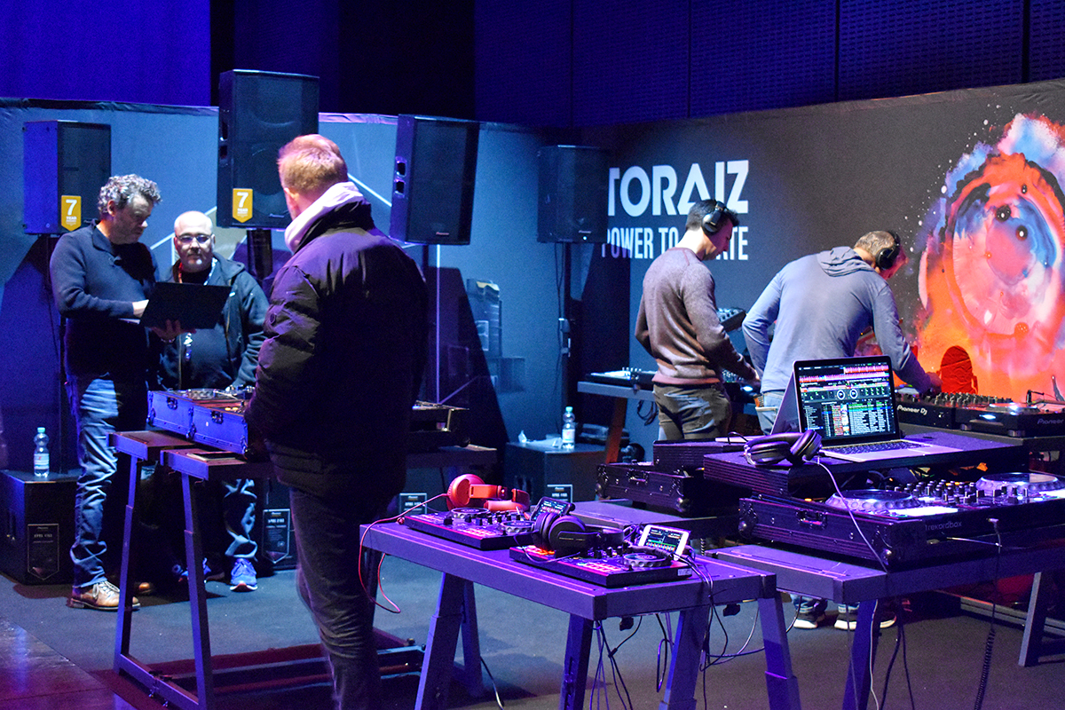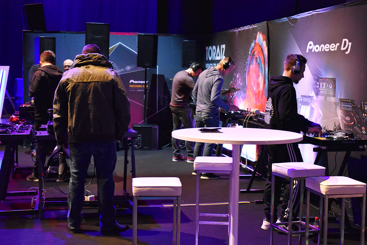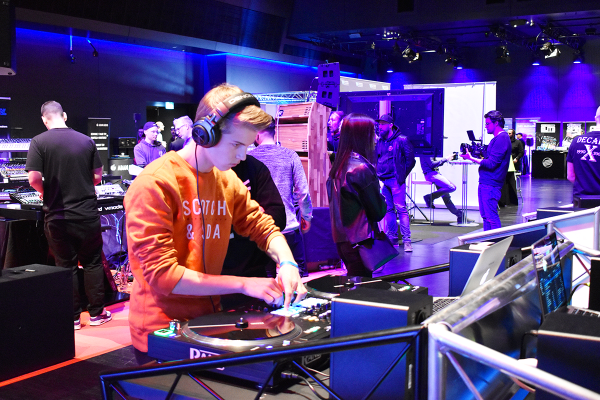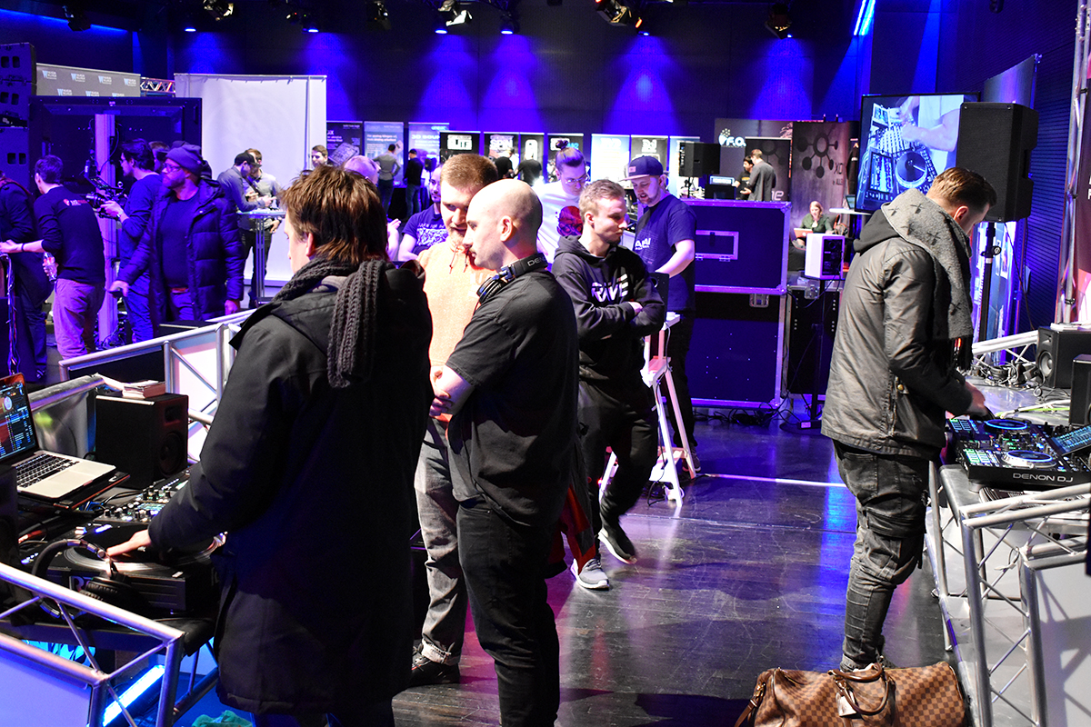 Auch der Ausstellerbereich hatte sich im Vergleich zum Vorjahr vergrößert und fand sich in einer separaten Halle wieder. Eigentlich alle Hersteller, sei es Audio Technica mit den Brands Allen&Heath, Play Differently und X:one, inMusic mit den Brands Akai, Rane DJ, und Denon DJ, Pioneer DJ, Technics, AIRA Roland, Reloop, elevator und Glorious waren vertreten und präsentierten das neueste DJ-Equipment. Aber auch Software Hersteller wie Cubase, FL Studio oder Ableton waren am Start, ebenso Anbieter von DJ- und Producer Kursen und weitere Hardware-Unternehmen wie Yamaha, Adam Audio oder beispielsweise Eich Amplification, die einen Audio-interactiven Dance Floor präsentierten.