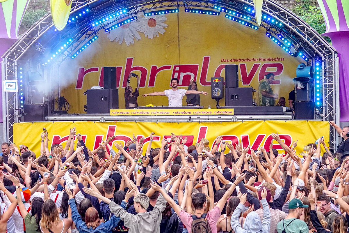 Rund 36.000 Besucher feierten am 06.07.2019 10 Stunden bei Ruhr-in-Love, dem Familienfest der elektronischen Musikszene im Oberhausener Olga-Park. Friedlich und ausgelassen tanzten die Fans zur Musik von über 400 DJs auf 40 Bühnen, darunter Stars wie MOGUAI, Will Sparks oder Pappenheimer. Ab 19 Uhr zogen Regenschauer über den Olga-Park, die jedoch der guten Stimmung keinen Abbruch taten. Ruhr-in-Love verlief reibungslos und ohne nennenswerte Zwischenfälle.