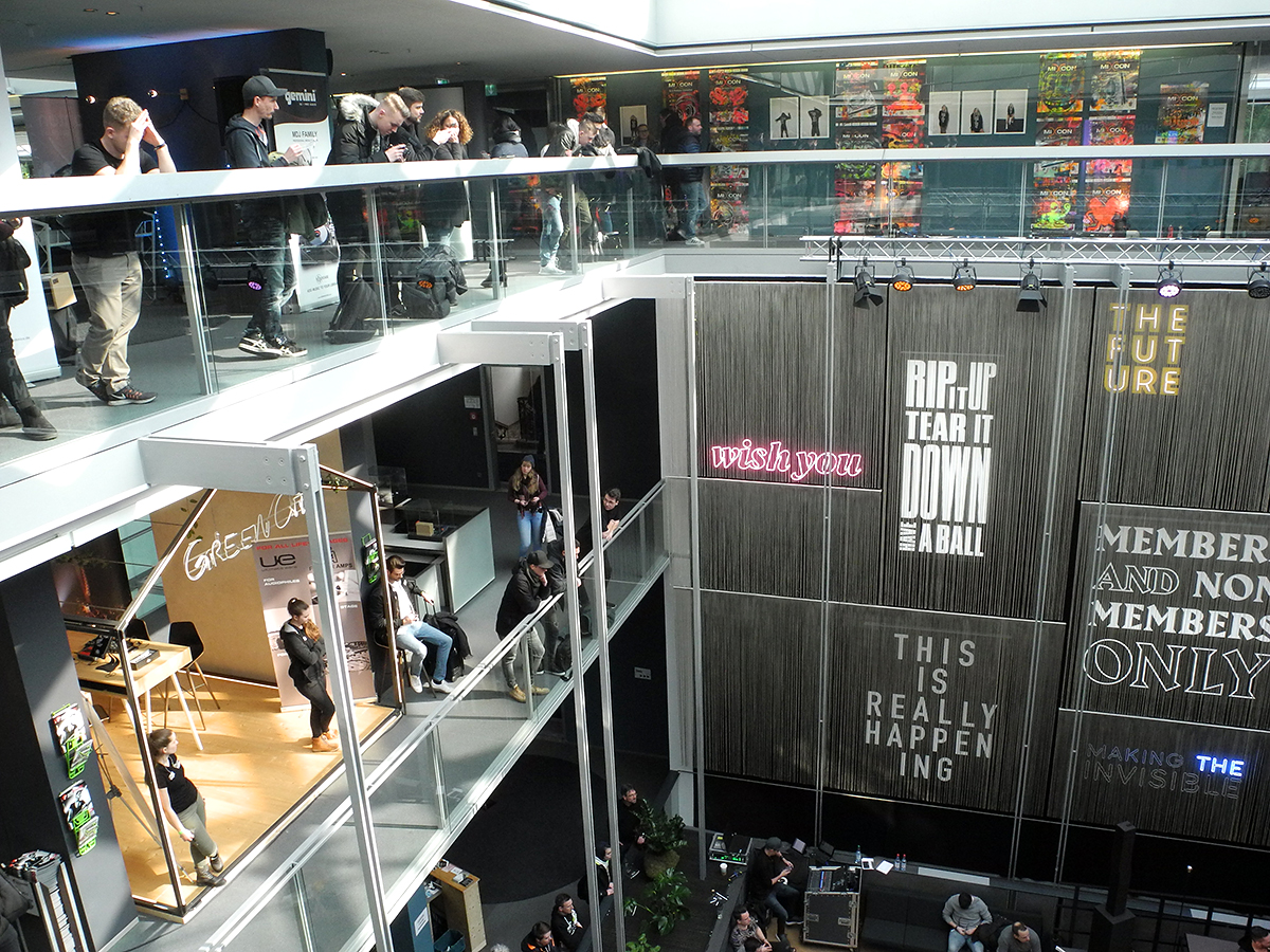 Die 2. Mixcon schlug ihre Zelte im durch und durch trendigen Pop-Up Hotel The LoveLace in Münchens Innenstatt auf – eine auf dem ersten Blick ungewöhnliche Location für eine Messe, waren doch die Aussteller und die Panelfloors auf drei verschiedene Ebenen aufgeteilt. Es war also vor allem Laufarbeit angesagt oder alternativ ein wenig Geduld, wenn man den Fahrstuhl dem Treppensteigen vorzog. Den ersten Zweifeln zu trotz, funktionierte das Konzept sehr gut, das hippe Ambiente passte perfekt zum eben diesen Publikum. Dass außer Schein auch sehr viel Sein geboten wurde, dafür sorgten die zahlreichen Aussteller wie Denon DJ, Akai, Pioneer DJ, Allen&Heath, Reloop, Ortofon, Gemini, Native Instruments, Rane DJ, Roland, Getya und viele Weitere. Etliche Fachbeiträge, auf das Publikum zugeschnitten (diverse Marketing Vorträge und Praxis-Workshops) rundeten das Angebot ab. Abends verwandelte sich die zur Stage umfunktionierte Bar wieder zur Partylocation, so dass Lernen und Feiern nahtlos ineinander griff.